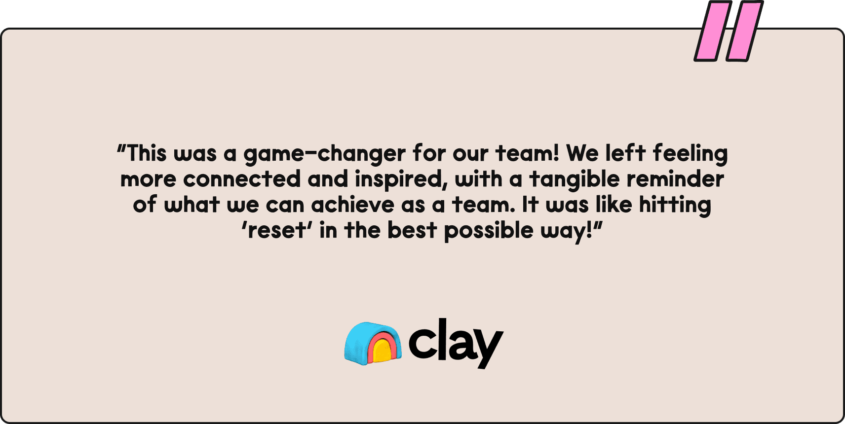“This was a game-changer for our team! We left feeling more connected and inspired, with a tangible reminder of what we can achieve as a team. It was like hitting ‘reset’ in the best possible way!”