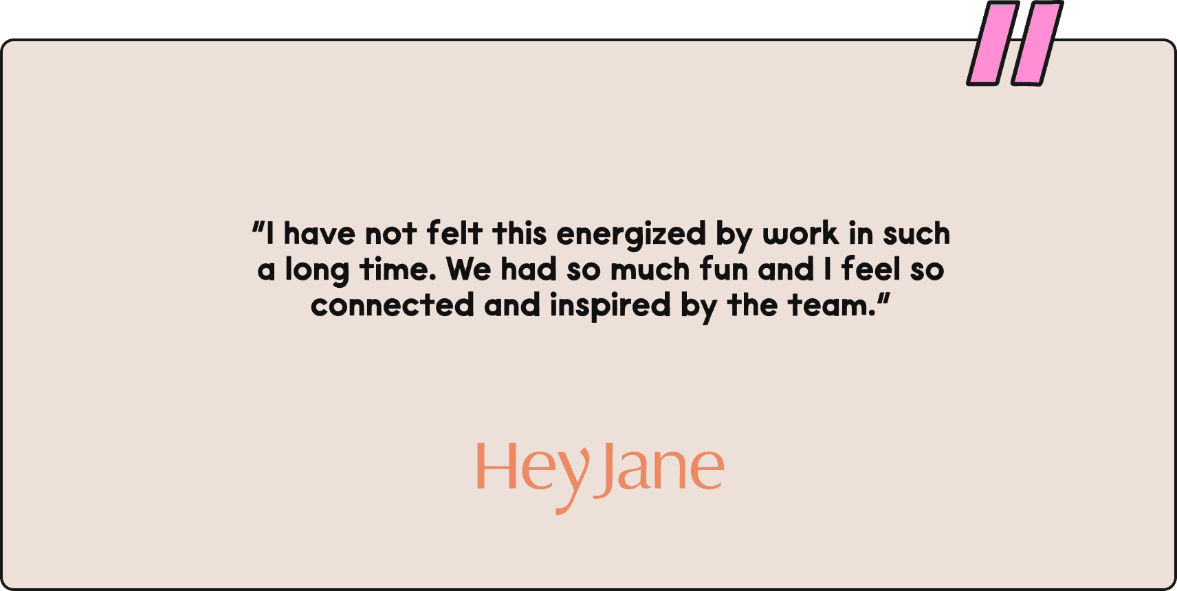 “I have not felt this energized by work in such a long time. We had so much fun and I feel so connected and inspired by the team.”