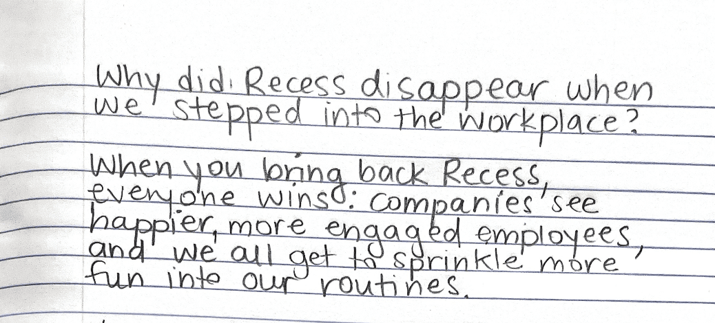 Keep reading to learn more about the journey that shaped Recess at Work.